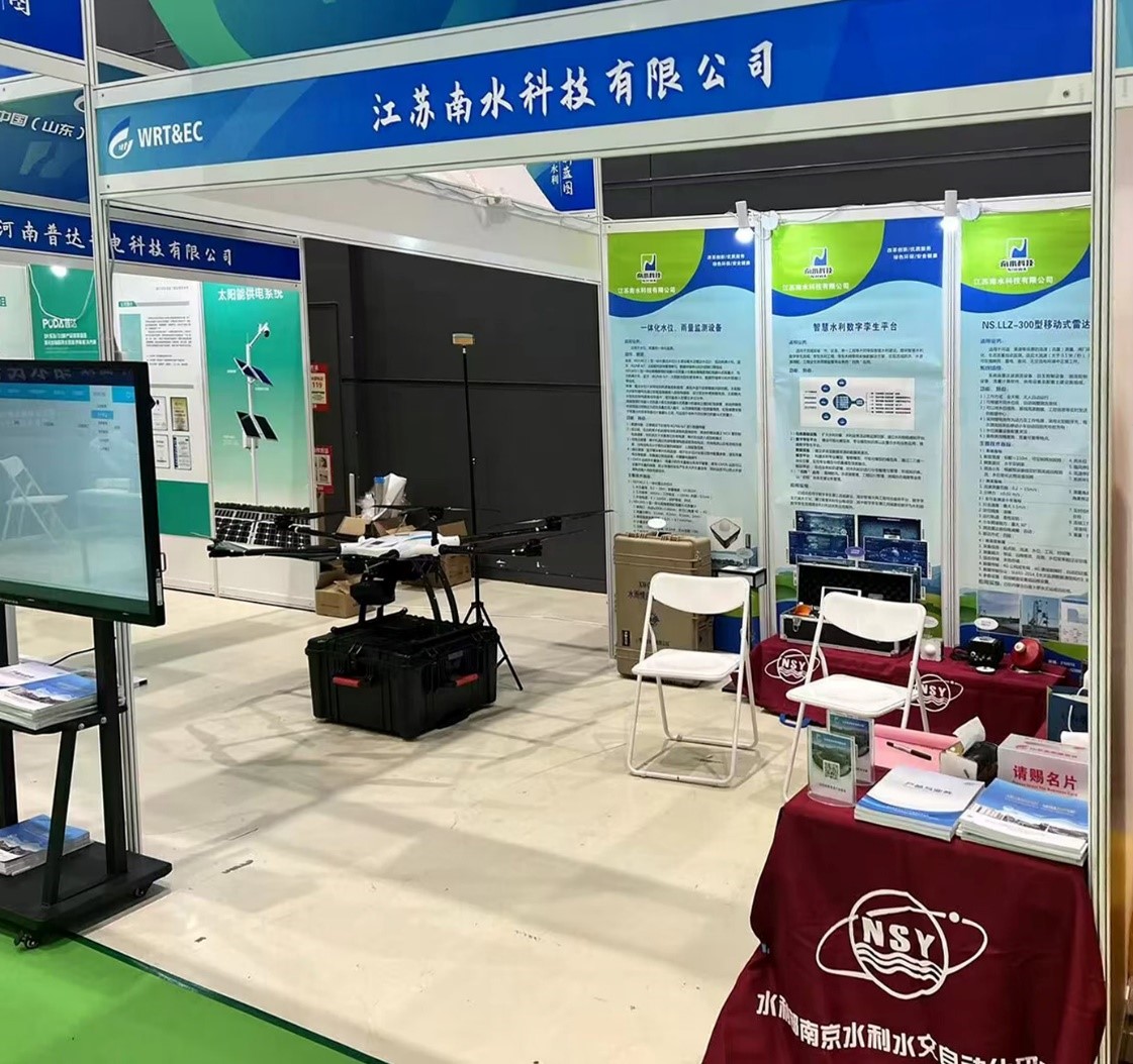 本次参展由市场部组织,水文水环境事业部和中试推广中心配合,现场实物展示了LDZ-1无人机测流系统、WYY-3B遥测压力水位计、NSY.WLZ-1型一体化雷达水位计、LJZ系列流量测验微系统等;展板展示了NS.LLZ-300型移动式雷达波测流系统、灌区闸门及流量自动化控制监测系统、缆道全量程场景化流量测验系统、智慧水利数字孪生平台等;视频展示了中小型水库安全监管与预警平台、数字孪生业务平台、智慧灌区综合管理系统等。