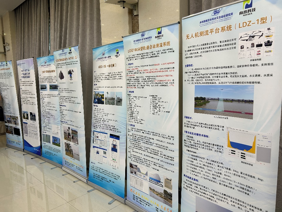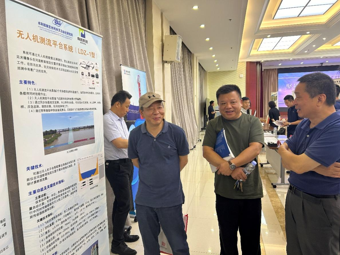 推介会现场,南水科技共有8项技术参展,对WDZ-1S一体化闸门、边缘计算智能监测终端、XHG1800型墒情自动监测装置、一体化智能毫米波雷达水位计、无人机测流平台系统、LGQ100A型轨道自动测流系统、一体化厢式九参数在线监测站等技术集中进行了展示和推介,通过设立展板画报、发放宣传手册等多种形式全方位推介南水科技在水灾害防御与应急监测、智慧水利、水质监测等领域的技术创新,其中“智慧灌区综合信息服务平台”技术受邀在现场进行PPT宣讲推介。展览期间,南水科技展台吸引了省水利厅、省水科院、各市水利局、水利工程管理处等参会代表的高度关注,并与技术人员进行了现场研讨与深入交流。